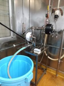 柔らかい記事を吸込み、1.5m程のホッパーに吸込みたい、とのことでサニタリーダイヤフラムポンプSBシリーズをご提案、2度に渡るテストにて採用頂きました。