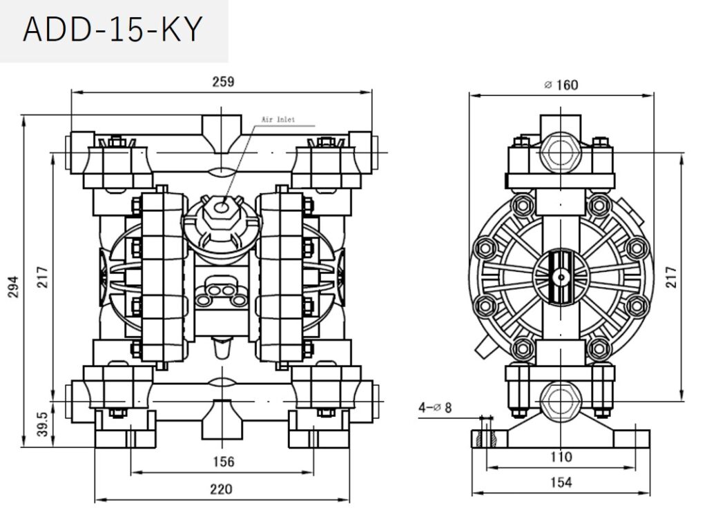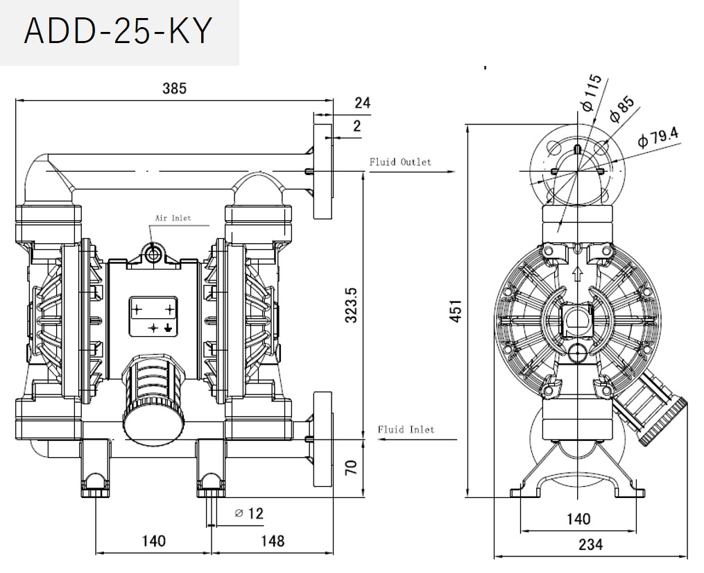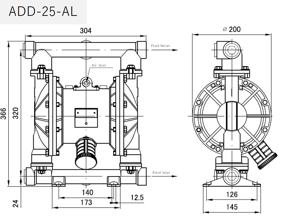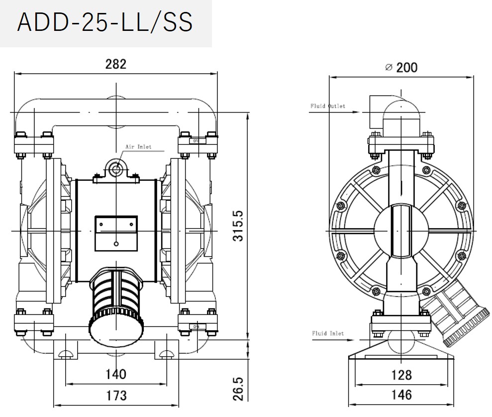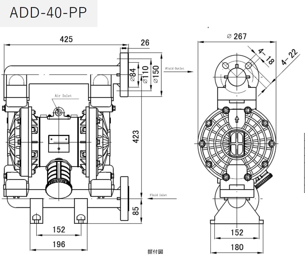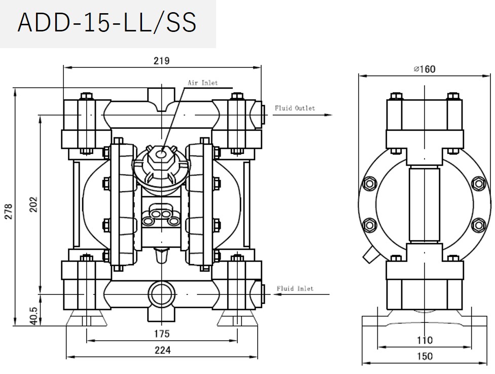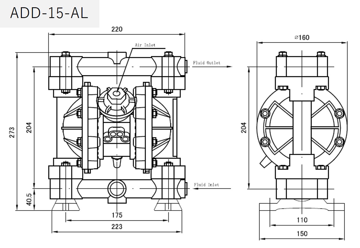 エアダイヤフラムポンプ ADDシリーズ外径寸法図