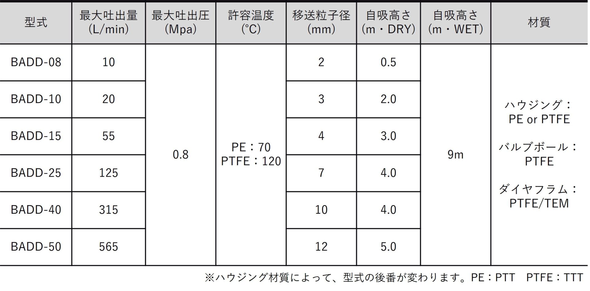 微脈動エアダイヤフラムポンプ 仕様