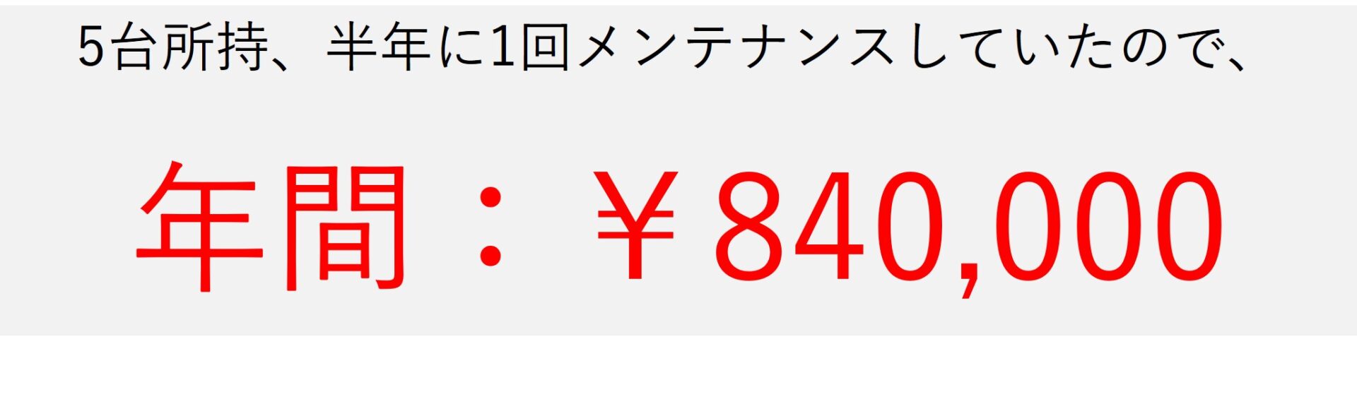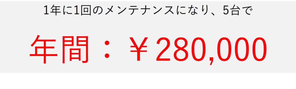 そう思われた方、これは「1台あたり」「1回」のメンテナンスコストです。