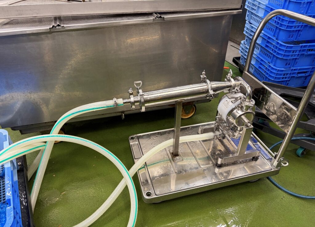業務用食品(卵製品や寿司食材など)を製造しているA社様より、「投入口高さ約2000mmの釜に調味液を移送したい」とご相談頂きました。流体は、調味液(醤油、砂糖、油など)、お湯(60度)、トマトケチャップ(粘度高)などで、デモ機お貸出しを経て導入頂きま...